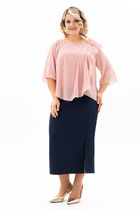 Длина жакета по спинке около 71,5 см, длина рукава около 62 см. Длина юбки по боковому шву около 43 см в размерах 40-46 и около 46 см в размерах 48-52