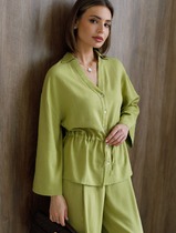 Свободная блузка с кулиской на талии изо льна с вискозой