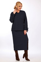 Костюм молодежный из трикотажного полотна «кулирка» в комбинации двух видов: с набивным рисунком и гладкокрашенного в единой цветовой гамме, состоящий из футболки и брюк. Футболка - из гладкокрашенного полотна, классического покроя, с короткими втачными рукавами, горловиной овальной формы и принтом на полочке, выполненным в технике «шелкографии». Горловина обработана втачной планкой из основного материала. Брюки - из полотна с набивным рисунком, длинные, слегка расширенные книзу, с карманами в боковых швах, на притачном поясе с эластичной тесьмой внутри.