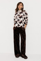 Юбка полуприлегающего силуэта, застегивается на потайную молнию сбоку, выполнена из великолепного гладкого сатина.