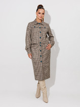 Жакет актуального кроя, с застежкой на петлю и пуговицу. Воротник пиджачного типа с отложными лацканами. Спереди обработаны карманы с клапанами в рамку. Рукава втачные двухшовные в длине до локтя.