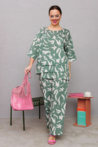 Костюм Элль стиль 2416 черный+принт цветы/черный
