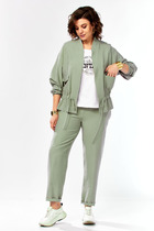 Комплект из костюмной ткани на подкладке, состоящий из жакета и юбки. Жакет приталенного силуэта с прорезными карманами с клапанами по переду. Воротник-английский, рукава - двухшовные. Кант по краю борта, клапанам добавляет стиля и элегантности. Застегивается на две пуговицы. Юбка на подкладке, слегка зауженная к низу, без пояса. Верх юбки обработан обтачкой. Шлица в среднем шве заднего полотнища юбки обеспечит свободу движения. Застежка - молния в среднем шве юбки.