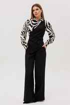 Брюки женские из текстильной ткани, прямого силуэта. Пояс брюк на резинке.