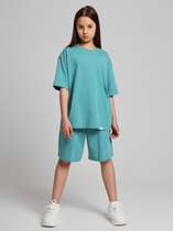 Комплект для девочки из футера, состоящий из 2 изделий: свитшот (джемпер) и леггинсы. Свитшот укороченный прямого силуэта, с длинными рукавами-реглан на манжетах. Круглая горловина оформлена бейкой. На переде принт. Низ свитшота не обработан.