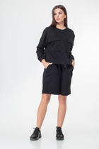 Туника А-силуэта из мягкого приятного на ощупь трикотажного полотна. Линия плеча спущена. По переду завязка на бант и накладной карман. Спинка со средним швом и разрезом по низу. Рукав втачной с декоративной патой из отделочной ткани, по низу притачная манжета.