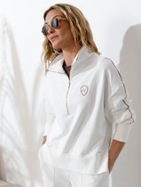 Джемпер прямого силуэта с втачным спущенным рукавом. По левой части переда накладной карман из отделочной ткани. Горловина обработана отделочной бейкой. Низ джемпера и рукавов обработаны на плоскошовной машине.