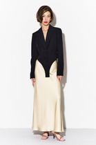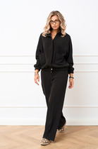 Брюки зауженные к низу, на манжете. Спереди карманы и смещенные рельефы с кантом. Пояс тритачной с резинкой сзади и по бокам.