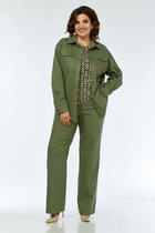 Брюки прямые, на притачном поясе с пуговицей и резинками в районе боковых швов. На передних половинках обработаны функциональные внутренние карманы. На задних половинках обработаны вытачки.