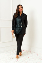 Стильный комплект-двойка из хлопкового облегчённого джинса с эластаном. Свободный крой рубашки и брюк обеспечивает максимальный комфорт. Подходит для создания повседневных образов в сочетании с любой обувью и аксессуарами. Рубашка с центральной бортовой застёжкой на 6 петель и пуговиц. На полочках обработаны кокетки, рельефные швы, карманы. Спинка с кокеткой, рельефными швами. В боковых швах обработаны разрезы. Рукав втачной, одношовный, с цельнокроеной манжетой и застёгивающейся патой. Воротник стояче-отложной со стойкой. Брюки прямые, на притачном поясе с пуговицей, шлёвками и резинками в районе боковых швов. На передних половинках обработаны функциональные карманы. На задних половинках — кокетки, накладные карманы.