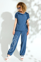 Повседневный домашний костюм. Футболка с принтом на полочке, с цельнокроенным рукавом и разрезами по бокам. Брижди средней длины и посадки с внутренними карманами. Пояс притачной