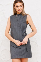Юбка зауженная к низу, на притачном поясе, застегивающимся на 1 петлю и пуговицу. Переднее полотнище с рельефными швами. Заднее полотнище с талиевыми вытачками, со средним швом, в верхней части которого обработана застежка на потайную тесьму-молнию, в нижней – шлица. Юбка на притачной по низу подкладке. В размерах 50,52,54 в поясе на уровне боковых швов предусмотрены резинки, для лучшего прилегания по талии. Средняя длина жакета по среднему шву спинки 58,0 см, (±2,0 см);