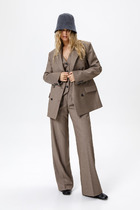 Костюм, состоящий из шорт с прорезными карманами в боковых швах и майки на бретельках с отрезным лифом. На майке с левой стороны внизу расположена печать
