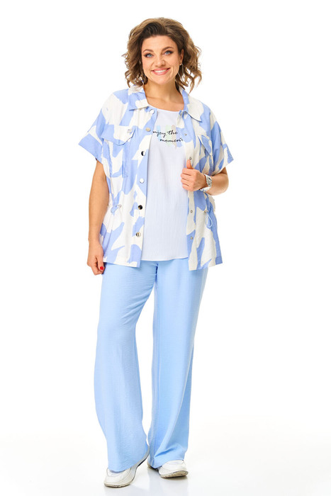 Комплект женский состоит из блузы, топа и брюк.