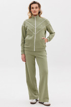 Брюки расширенные к низу типа "палаццо" с центральной застёжкой на молнию и петлю-пуговицу. В боковых швах карманы с отрезным бочком. Пояс притачной с резинкой по задней части пояса.