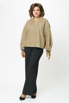 Брюки свободные прямого силуэта. На передних половинках выполнены по две односторонние складки. Пояс притачной на резинке с втянутым шнуром. В боковых швах карманы. Вся фурнитура металлическая premium качества.