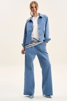 Комплект женский, состоящий из блузы и юбки. Блуза свободного силуэта, почти бесформенная, легко ниспадает, подчёркивая лёгкость и непринуждённость. Фактурный трикотаж, имеет небольшую прозрачность. Блуза укороченная, с округлой формой горловины. Рукав по форме летучая-мышь. Спинка без особенностей. Юбка трапециевидного силуэта с притачной кокеткой по верху юбки. Застёжка на декоративную тесьму молнию в среднем шве спинки юбки. Главной особенностью юбки является конструктивные подрезы выполненные горизонтально и вертикально с отстрочкой контрастного цвета. Длина блузы по спинке 66 см (р 50-54), 67 см (р 56-60). Длина юбки 82 см.