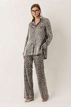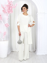 Костюм из свитшота и брюк. Свитшот с полукруглой горловиной, удлиненными манжетами, вставкой на полочке и накладными карманами. Брюки прямого кроя на манжетах с карманами. Ростовка: 164-168. Состав: Велюр люрекс (хлопок 80%, полиэстер 20%)
