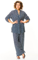 Костюм женский из плотного гладкокрашеного трикотажного полотна "кулирка", состоящий из футболки и шорт. Футболка - свободного покроя, с удлиненными плечевым и швами, короткими втачными рукавами и горловиной овальной формы, обработанной втачной планкой. В нижней части переда слева настрочен декоративный элемент прямоугольной формы. По горловине проложена отделочная строчка. Шорты - классического покроя, на притачном поясе с эластичной тесьмой внутри и карманами в боковых швах. Для регулирования степени прилегания шорт по талии в пояс вставлен шнурок, продетый через два отверстия в соединительных швах в центре пояса.