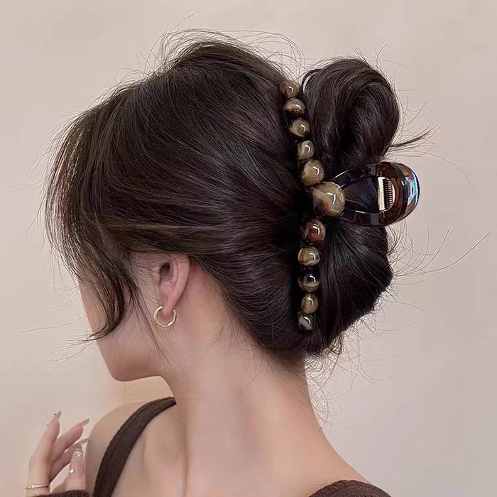 Совместные покупки Магнитогорск Косметика и парфюмерия Прочий макияж — Краб для волос с коричневыми бусинами, 13 см.