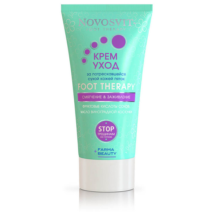 Крем эффективно ухаживает за сухой кожей ступней, особенно рекомендуется при шелушении и растрескивании пяток. Фруктовые кислоты соков киви, апельсина, грейпфрута и яблока, усилены мочевиной, способствуют обновлению клеток кожи, заживлению трещин и профилактике их появления. Масло виноградной косточки, Д-пантенол, Витамин Е, экстракт сладкого миндаля смягчают и увлажняют кожу, восстанавливают потрескавшуюся кожу пяток