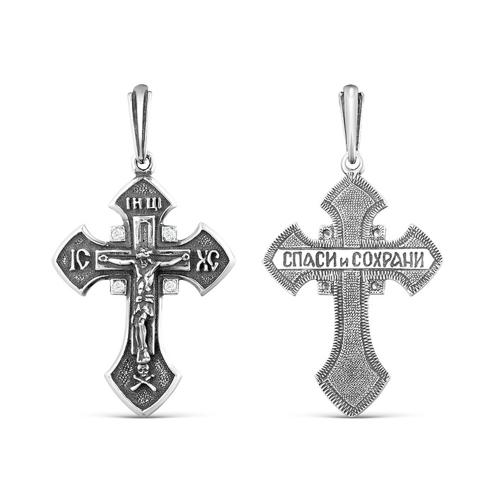 Совместные покупки Магнитогорск Ювелирные украшения и бижутерия Подвески — Крест из серебра с чернением и фианитами - 5,2 см 925 пробы к3-002ч200