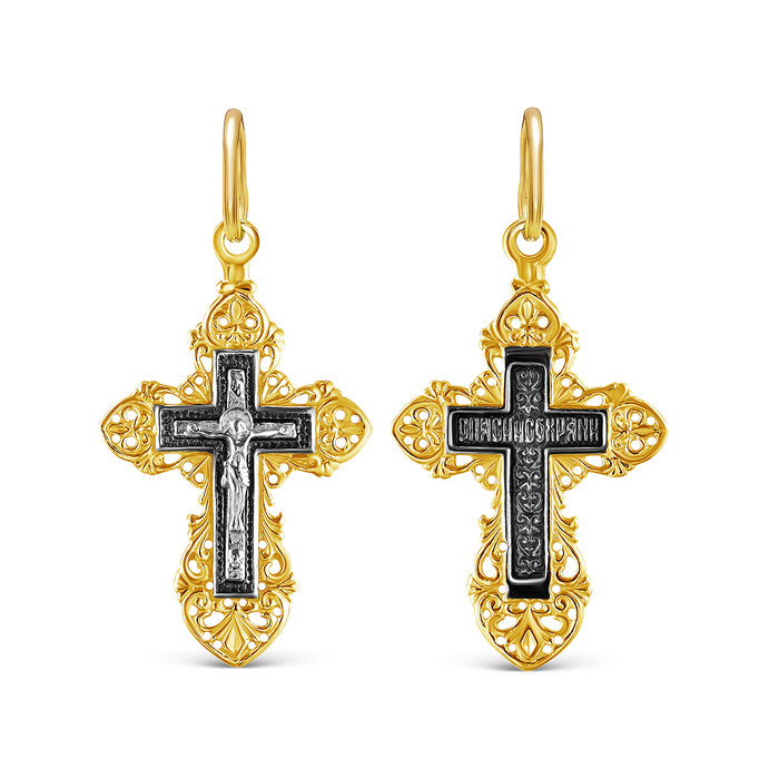 Совместные покупки Магнитогорск Ювелирные украшения и бижутерия Подвески — Крест из золочёного серебра с чернением - 3,2 см 925 пробы К3-255чз