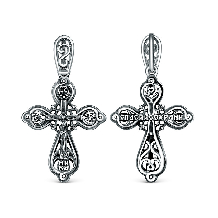 Совместные покупки Магнитогорск Ювелирные украшения и бижутерия Подвески — Крест православный из чернёного серебра - Спаси и сохрани 3,2 см ПР-013ч