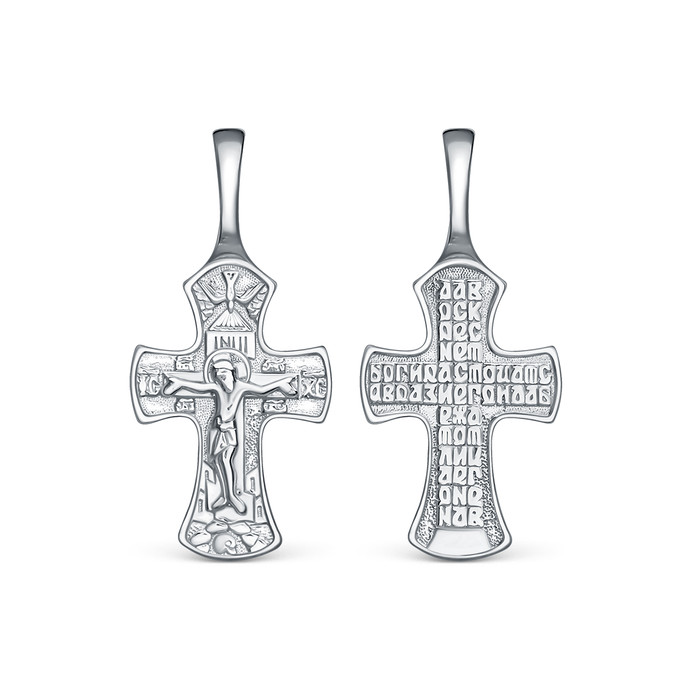Совместные покупки Магнитогорск Ювелирные украшения и бижутерия Подвески — Крест православный из родированного серебра - Да воскреснет Бог 2,7 см 925 пробы
