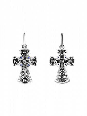 Крест с фианитом выборочно черненный серебро 925*