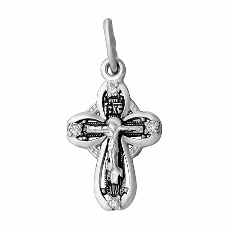 Крест с фианитом выборочно черненный серебро 925*