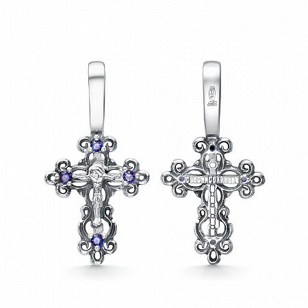 Крест с фианитом выборочно черненный серебро 925*