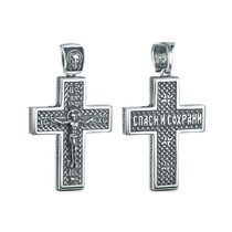 Крест из чернёного серебра - Рaспятие, Спаc Неpукотвоpный, Спаси и сохрани ПК-06