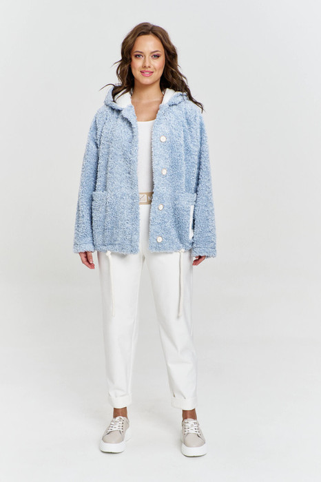 Куртка из лёгкого экомеха «Teddy Bear» прямого силуэта с застежкой на пуговицы, с капюшоном, длинным рукавом и спущенной линией плеча. Спереди удобные карманы. Куртка декорирована авторской вышивкой, по низу кулиса, стягивающаяся шнуром. Изделие на подкладке.