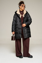 Застежка центральная на двустороннюю молнию от уровня груди до низа и кнопки по краю борта.