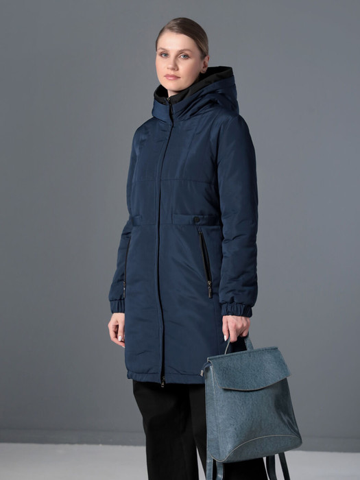 Удлиненная куртка-парка прямого силуэта с втачными рукавами подходит для женщин и девушек любой  возрастной категории. Застежка на двухзамковую молнию позволяет регулировать ширину парки внизу при подъеме и ходьбе. Воротник -  стойка, переходящая в капюшон. Низ втачного рукава оформлен манжетой с эластичной тесьмой, что способствует удержанию тепла внутри куртки. Две пары прорезных карманов, удобно расположеные в швах, застегиваются либо на кнопку, либо на молнию. Есть внутренний кармашек на молнии. Плащевая ткань, из которой выполнено изделие, имеет водоотталкивающую пропитку, выдерживающую небольшой  дождь, снег и ветер. Хорошо зарекомендовавший себя утеплитель "Холлофайбер", плотностью 200гр/м, защитит от холода.