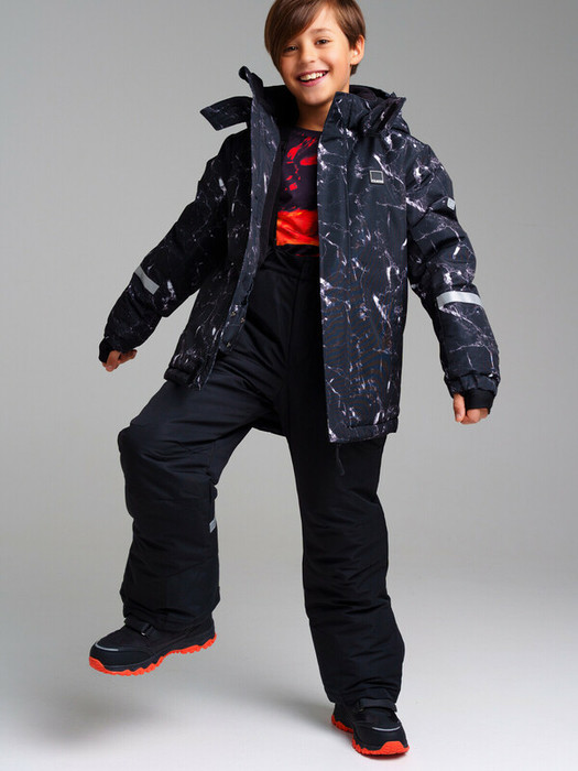 Куртка зимняя из мембранной ткани 5000*5000. Линия Nord - высокая степень теплозащиты. Температурный режим до -25С. Материал верха с ветрозащитным и водоотталкивающим покрытием. Внутренняя и внешняя ветрозащитные планки. Два боковых кармана на липучке. Внутренний карман. Потайной карман на молнии на левом рукаве. Подкладка - флис. Съемный капюшон с креплением на кнопках. Низ рукава на эластичном манжете с отверстием для большого пальца. Текстильный клапан для защиты подбородка при застегивании молнии. Светоотражающие элементы. *температурный режим является рекомендованным, необходимо учитывать уровень активности ребенка и многослойность поддевочной одежды (термобелье, флис).