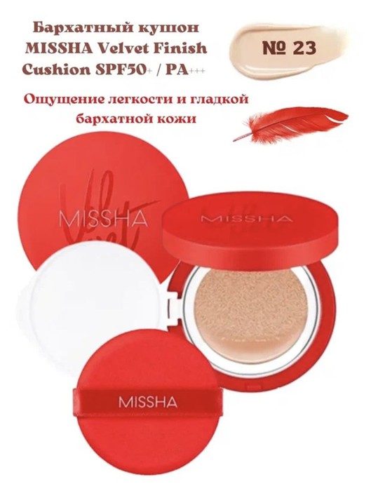 Совместные покупки Магнитогорск Косметика и парфюмерия Тональные кремы, пудры — Кушон с матовым финишем MISSHA Velvet Finish Cushion SPF50+/PA+++ (No.23)