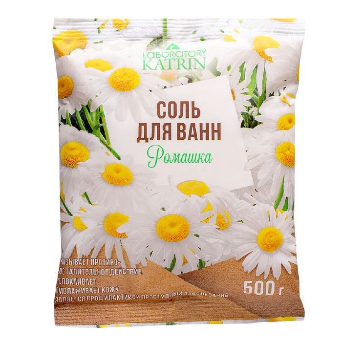 Основа морской соли - хлорид натрия. Помимо этого в состав входит множество целебных минералов. Благодаря целому комплексу микро- и макроэлементов, входящих в состав морской соли, она благоприятно воздействует не только на кожу, но и на организм в целом. Морская соль с ромашкой оказывает противовоспалительное, успокаивающее, седативное действие, помогает нормализовать давление и снизить нервное напряжение.