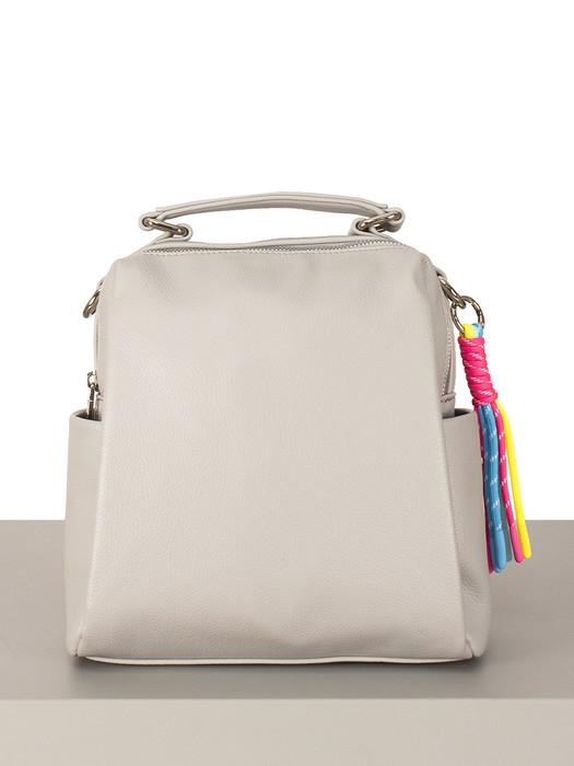 Рюкзак (сумка) женский выполнен из экокожи. Детали: две укреплённые стропой съёмные регулируемые ручки по 85 см, 1 съёмная регулируемая ручка на плечо 135см. Внутри изделия: 2 отделения на молнии, 1 карман для телефона, 1 открытый карман, 1 карман на молнии. Снаружи изделия: 1 карман на оборотной стороне на молнии, 2 боковых кармана. Брендированная подкладка из хлопка. Металлическая брендированная фурнитура. В комплекте фирменный пыльник.