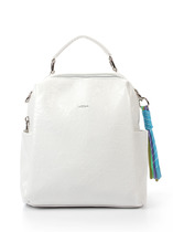 Рюкзак женский выполнен из экокожи. Детали: 2 укреплённые стропой регулируемые ручки по 85 см, маленькая ручка для держания в руке. Внутри изделия: 1 основное отделение на молнии, 2 открытых кармана, 1 карман для мобильного телефона, 2 кармана на молнии. Снаружи изделия: 1 карман на молнии на лицевой стороны, 1 карман с оборотной стороны на молнии. Брендированная подкладка из хлопка. Металлическая брендированная фурнитура серебристого цвета. В комплекте фирменный пыльник.
