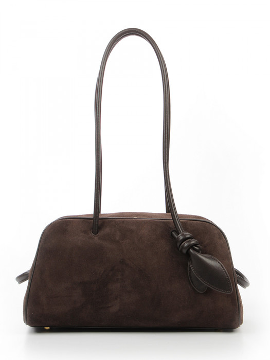 Сумка женская выполнена из натуральной замши. Детали: 2 ручки 70 см. Сумка на ножках. Каркас сумки: полужесткий. Внутри изделия: 1 отделение на молнии, 1 карман на молнии, 1 открытый карман. Снаружи изделия: 1 карман на молнии. Подкладка из хлопка. Металлическая брендированная фурнитура золотого цвета. В комплекте фирменный пыльник для хранения сумки.