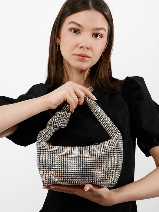 Сумка женская выполнена из текстиля, декорирована стразами. Детали: 1 ручка 30см. Внутри изделия: 1 отделение на молнии, 1 открытый карман. Брендированная подкладка из хлопка. Металлическая брендированная фурнитура серебристого цвета. В комплекте фирменный пыльник.