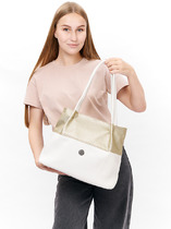 Сумка женская выполнена из экокожи. Детали: 2 ручки на плечо по 57 см. Внутри изделия: 2 отделения разделены перегородкой в виде кармана для документов на молнии, 1 открытый карман, 1 карман для мобильного телефона и 1 карман на молнии. Снаружи изделия: 1 карман на оборотной стороне изделия на молнии. Брендированная подкладка из хлопка. Металлическая брендированная фурнитура серебристого цвета. В комплекте фирменный пыльник.