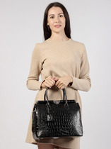 Сумка женская выполнена из экокожи. Детали: 2 короткие регулируемые ручки по 50 см, 1 длинный регулируемый ремешок на плечо 120 см. Внутри изделия: 1 отделение на молнии, 1 карман для документов на молнии, 1 открытый карман. Снаружи изделия: 1 карман спереди изделия. Брендированная подкладка из хлопка. Металлическая брендированная фурнитура серебристого цвета. В комплекте фирменный пыльник.
