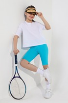 Легинсы короткие (ниже колена), выполнены из хлопкового полотна, с добавлением лайкры. Лайкра добавленная в состав, улучшает свойства хлопкового полотна. Оно становиться более износостойким, устойчивым с сминанию и вытягиванию.