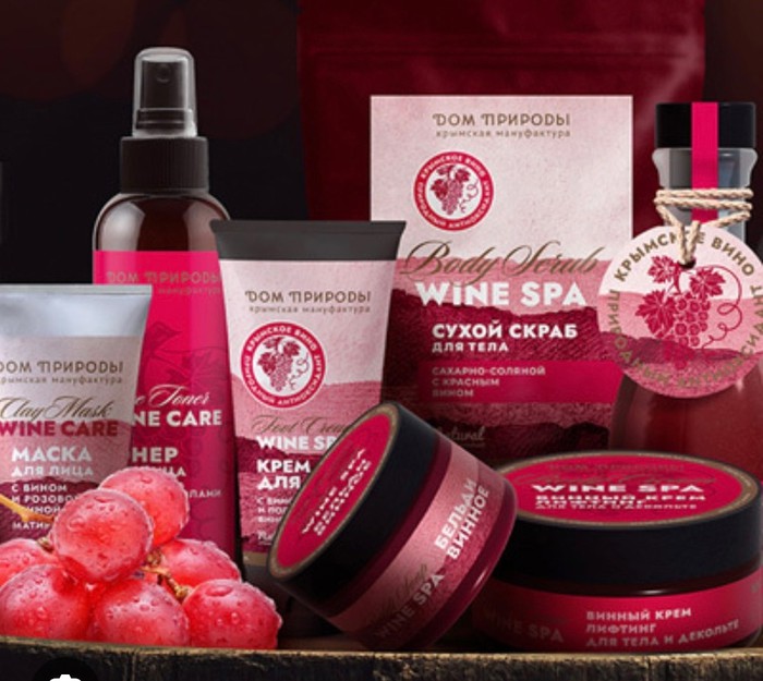 Линейка косметики с вином для волос и лица