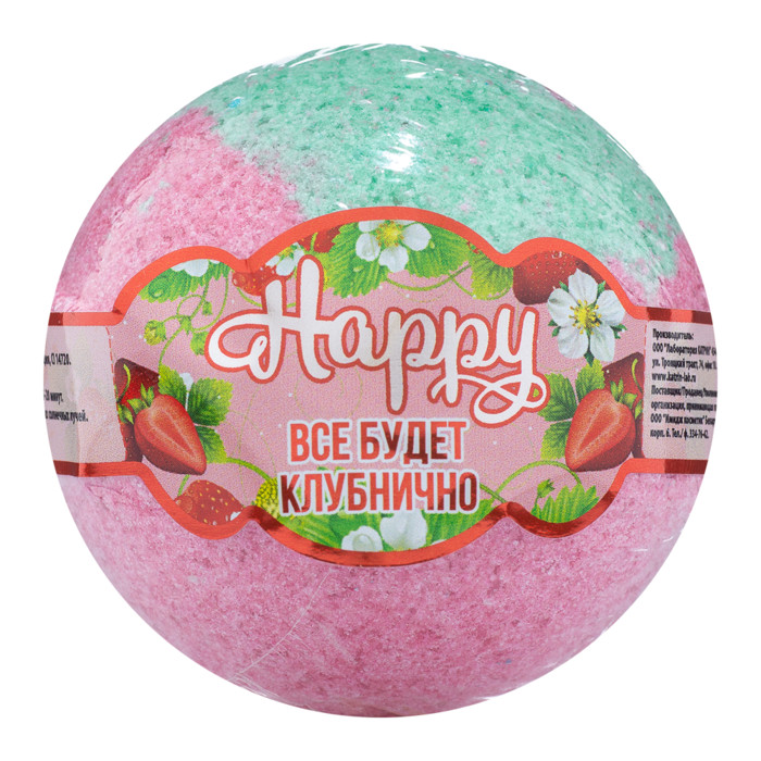ЛК Соль д/ванн Бурлящий шар Happy 120г Все будет клубнично, п/п (1шт) (6326)