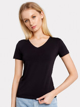 Футболка стильно смотрится благодаря оригинальной вязке «английская резинка» и гармонично дополнит повседневные и деловые образы. В палитре представлены базовые и фантазийные цвета.