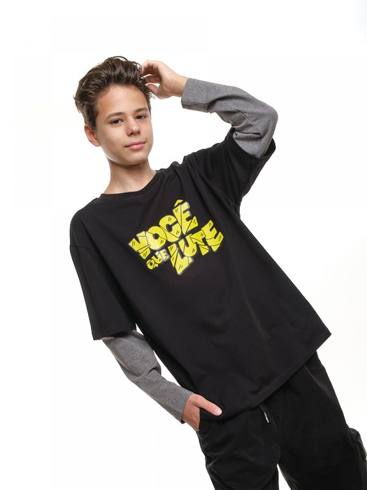 Совместные покупки Магнитогорск Детская одежда Футболки, майки — Mini Maxi Лонгслив с принтом (128-146см) 22-0229-2(3) черный/серый